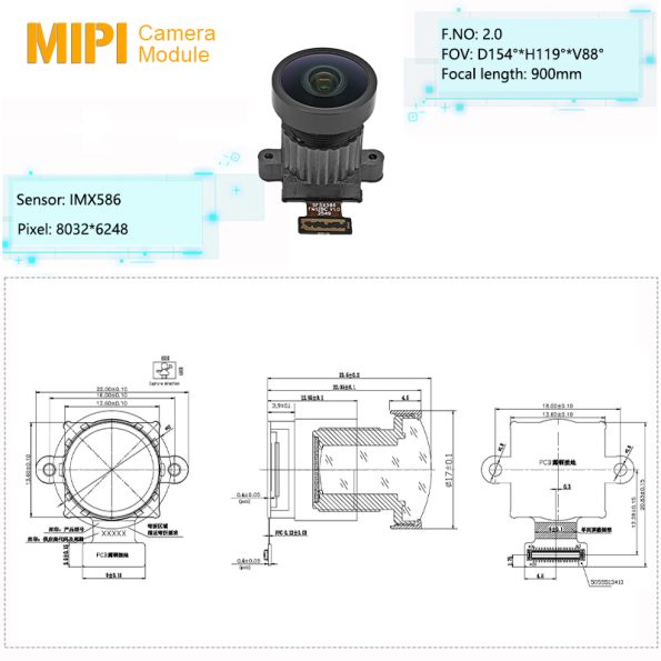 This IMX586 CMOS Sensor 48MP UHD Image Ultra-Wide Angle Camera Module,is equipped with Sony’s flagship IMX586 CMOS image sensor, integrating a fixed-focus optical solution, high-precision manufacturing process and anti-interference hardware design. It delivers four core strengths: ultra-high resolution, ultra-wide field of view, large aperture light intake, and strong anti-interference capability, specially designed for high-precision vision capture, harsh-environment imaging and high-end intelligent equipment.The module features a calibrated focus distance of 900 and a white glass dust-proof structure at the IR end with no filter design, balancing dust protection and optical light transmittance. Core assembly is completed in a Class 10/1000 COB clean room, with AA active alignment technology achieving micron-level precision between the lens and sensor. Strict tolerance control and full-process quality inspection are applied to all components, ensuring standardized optical performance and structural reliability for mass production, ideal for high-standard scenarios such as industry, automotive and high-end imaging.